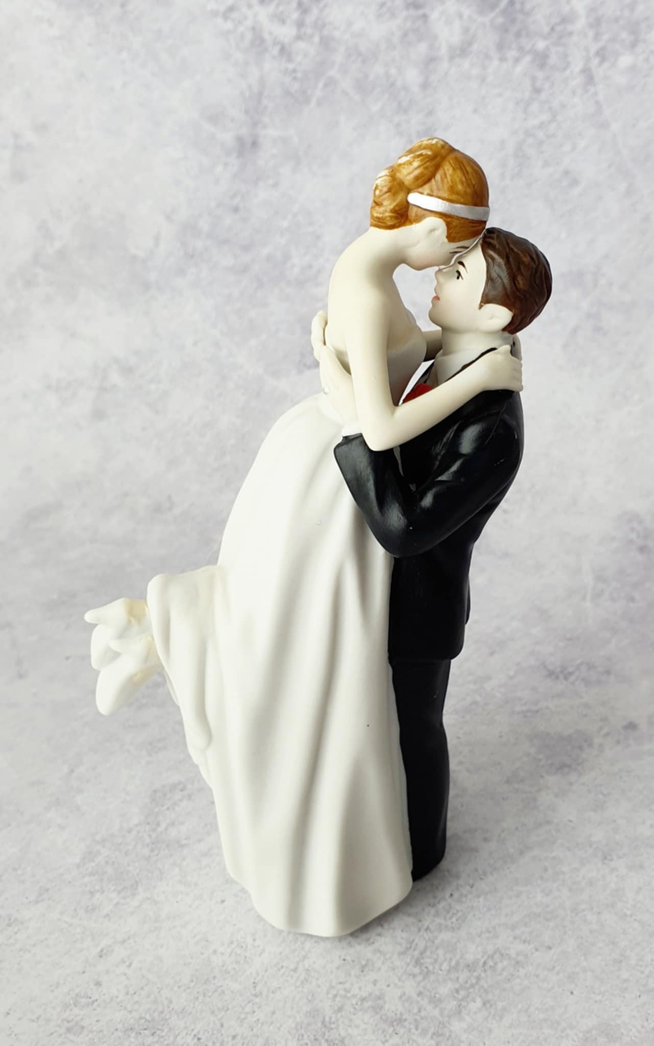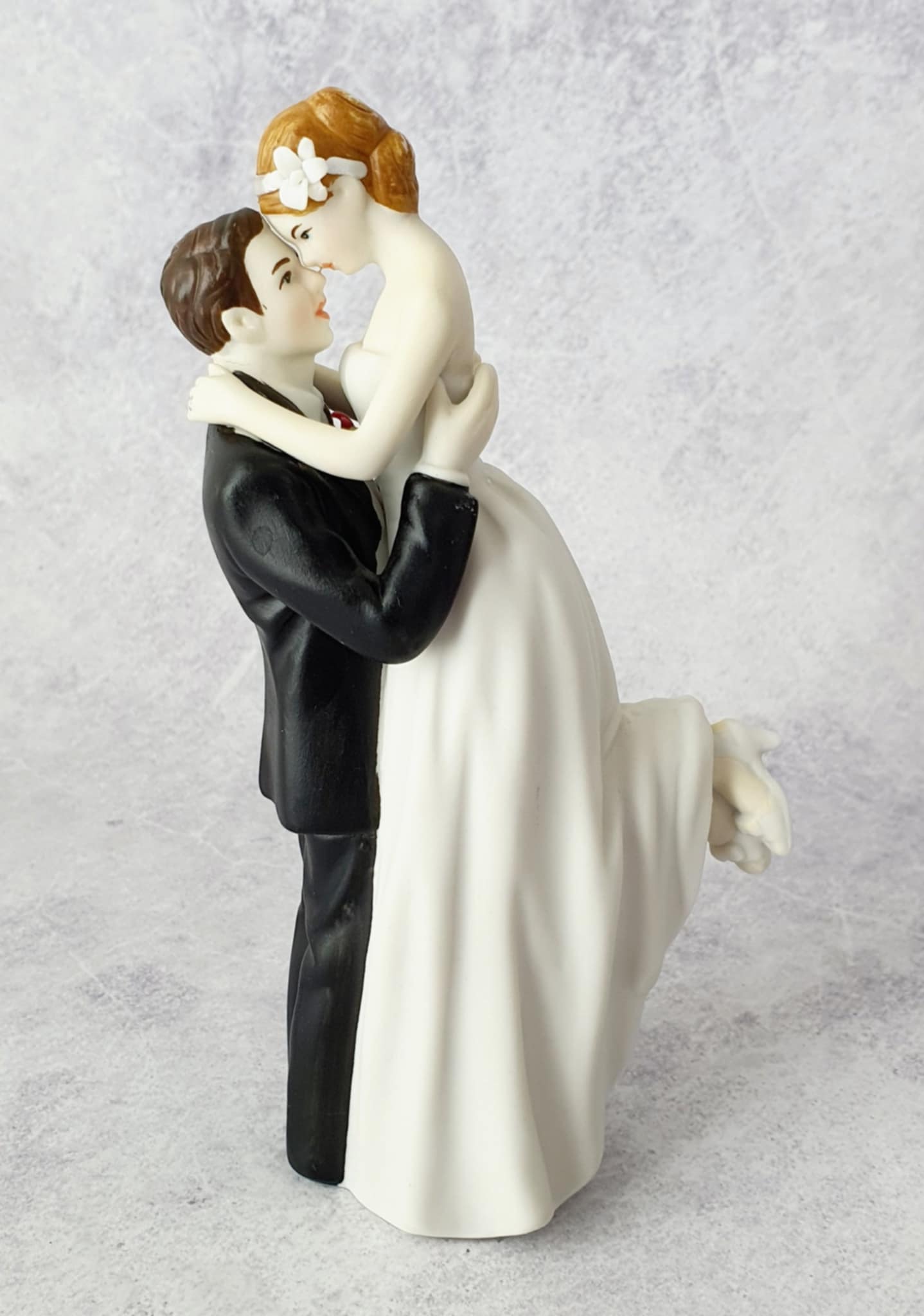Stylishly dressed for both the classicist or modernist this adoring couple perfectly represent "completely in love". Hand painted porcelain.